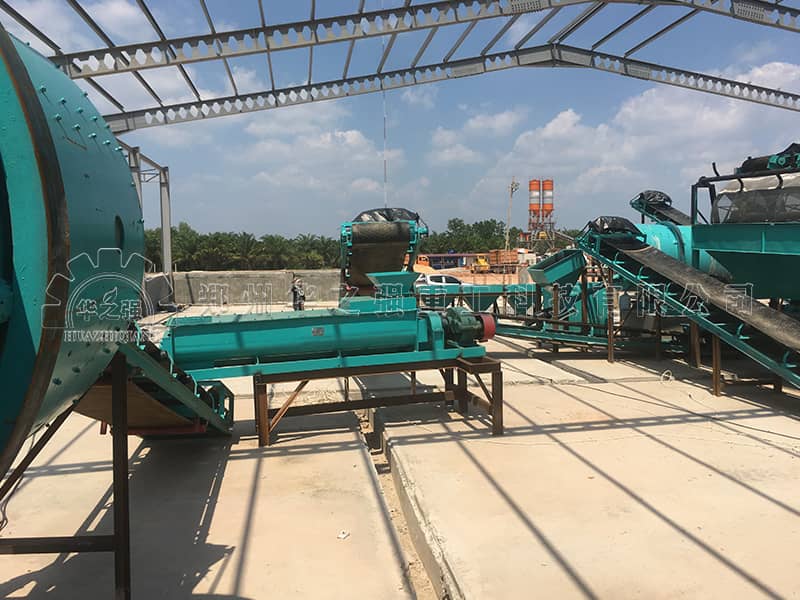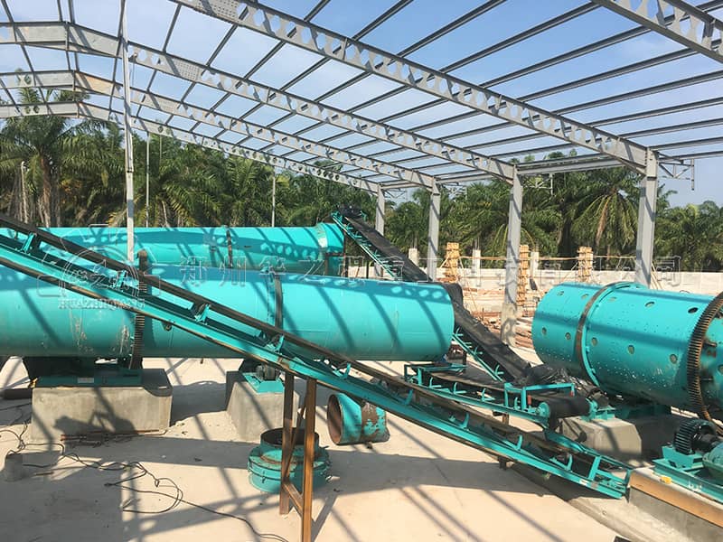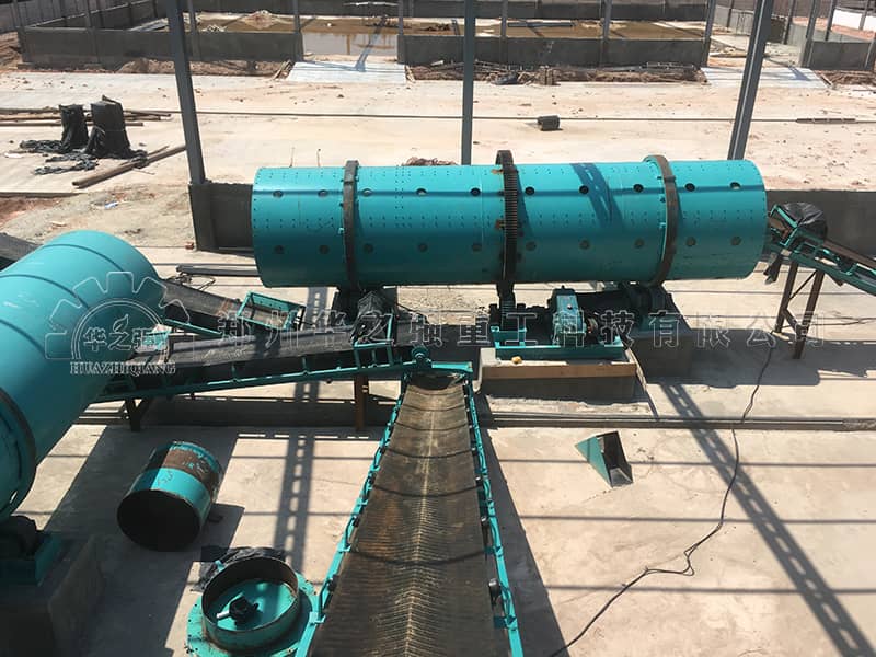 【主要設備】:雙螺旋翻堆機,新型有機肥二合一造粒機,滾筒篩分機,烘干機